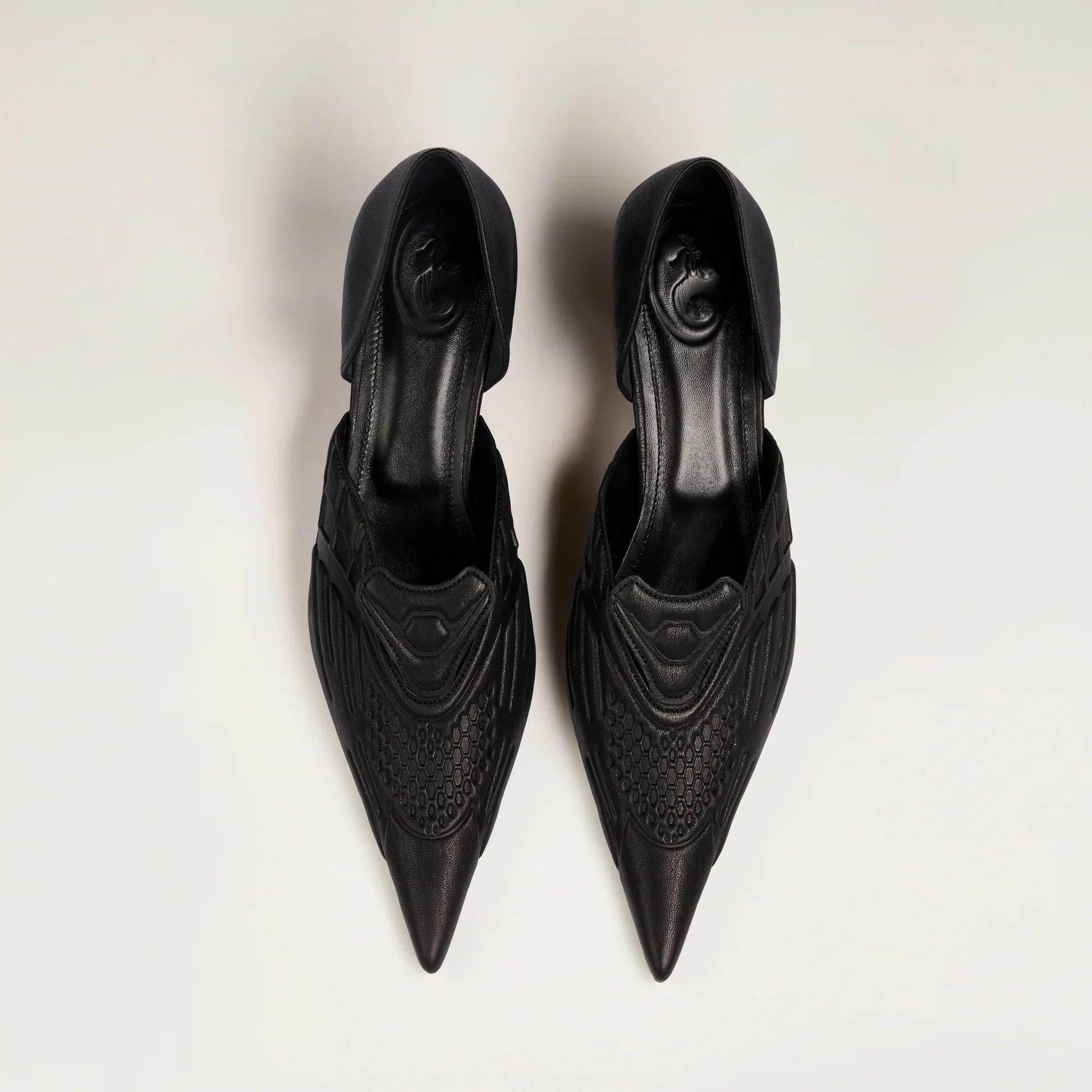 INVASIVE MODIFICATION SHOES ARE CRAFTED FROM HIGH-QUALITY HIDES AND HANDCRAFTED WITH PRECISION. EACH PAIR IS INDIVIDUAL, SLIGHT VARIATIONS IN COLOR, TEXTURE, OR MARKINGS ARE NATURAL FEATURES AND SHOULD NOT BE CONSIDERED IMPERFECTIONS. TO MAINTAIN THEIR ORIGINAL APPEARANCE OVER TIME: AVOID CONTACT WITH WATER, OILS, PERFUME, OR COSMETICS. IF DAMP, GENTLY DRY WITH A SOFT, LIGHT-COLORED CLOTH. WHEN SOLES OR HEELS SHOW WEAR, TAKE THEM TO A PROFESSIONAL FOR REPAIR OR TO ADD THIN PROTECTIVE RUBBER SOLES.